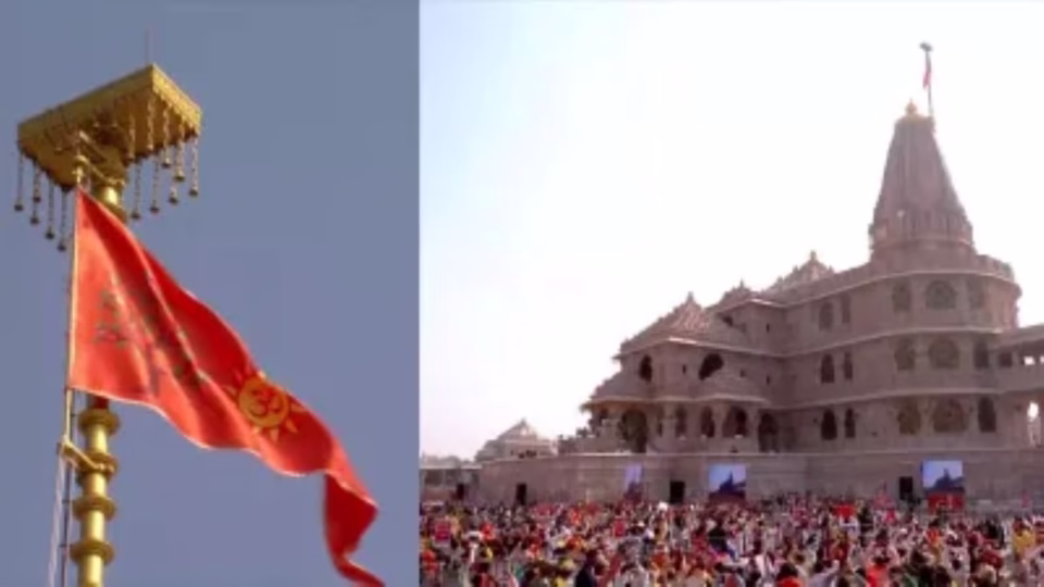 अयोध्या के भव्य श्री राम जन्मभूमि मंदिर के शिखर पर आज धर्म ध्वज फहरा दिया गया। शुभ मुहूर्त में प्रधानमंत्री नरेंद्र मोदी ने 22 फीट लंबे, 11 फीट चौड़े और करीब 3 किलो वजनी भगवा ध्वज का ध्वजारोहण किया।